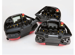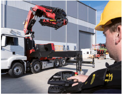 La radiocommande fait souvent partie de l’équipement standard des grues de manutention modernes. Les radiocommandes PALFINGER, équipées soit d’un levier de commande linéaire soit d’un levier de commande en croix, offrent un confort optimal. Sur les grues équipées du système PALTRONIC, l’écran graphique à LED ou l'afficheur informe l’opérateur de l’état de la grue.