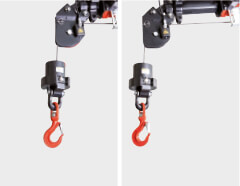 Des capteurs placés dans la tête de poulie détectent le mouvement et transmettent les signaux directement au Paltronic. Si le SRC est activé, il maintient automatiquement une distance constante entre la tête de poulie et le moufle pendant tous les mouvements de la grue induisant une augmentation ou une réduction de la longueur du câble. Un capteur placé sur la tête de poulie détecte qu’un mouvement réduisant la longueur du câble est effectué lorsque le bras est en extension. Si le bras articulé ou le fly-jib est abaissé, le SRC ajuste également le treuil pour maintenir une distance constante entre le moufle et la tête de poulie.